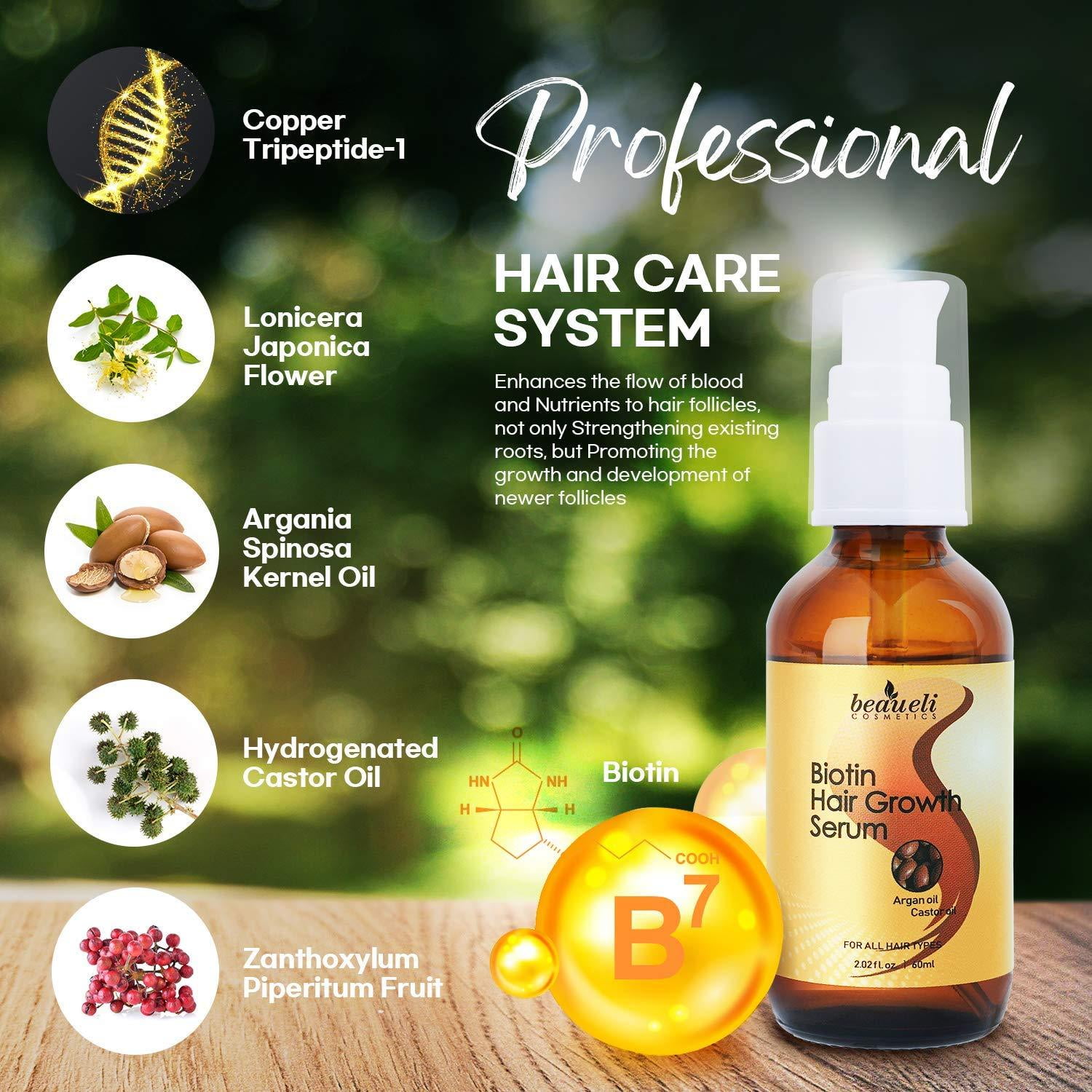 Biotin Hair Growth Serum With Castor Oil Argan Oil Hair Loss Prevention Treatment With Fine Thinning Hair Formula To Help Grow Healthy Thicker Strong Hair For Men Women By Beaueli